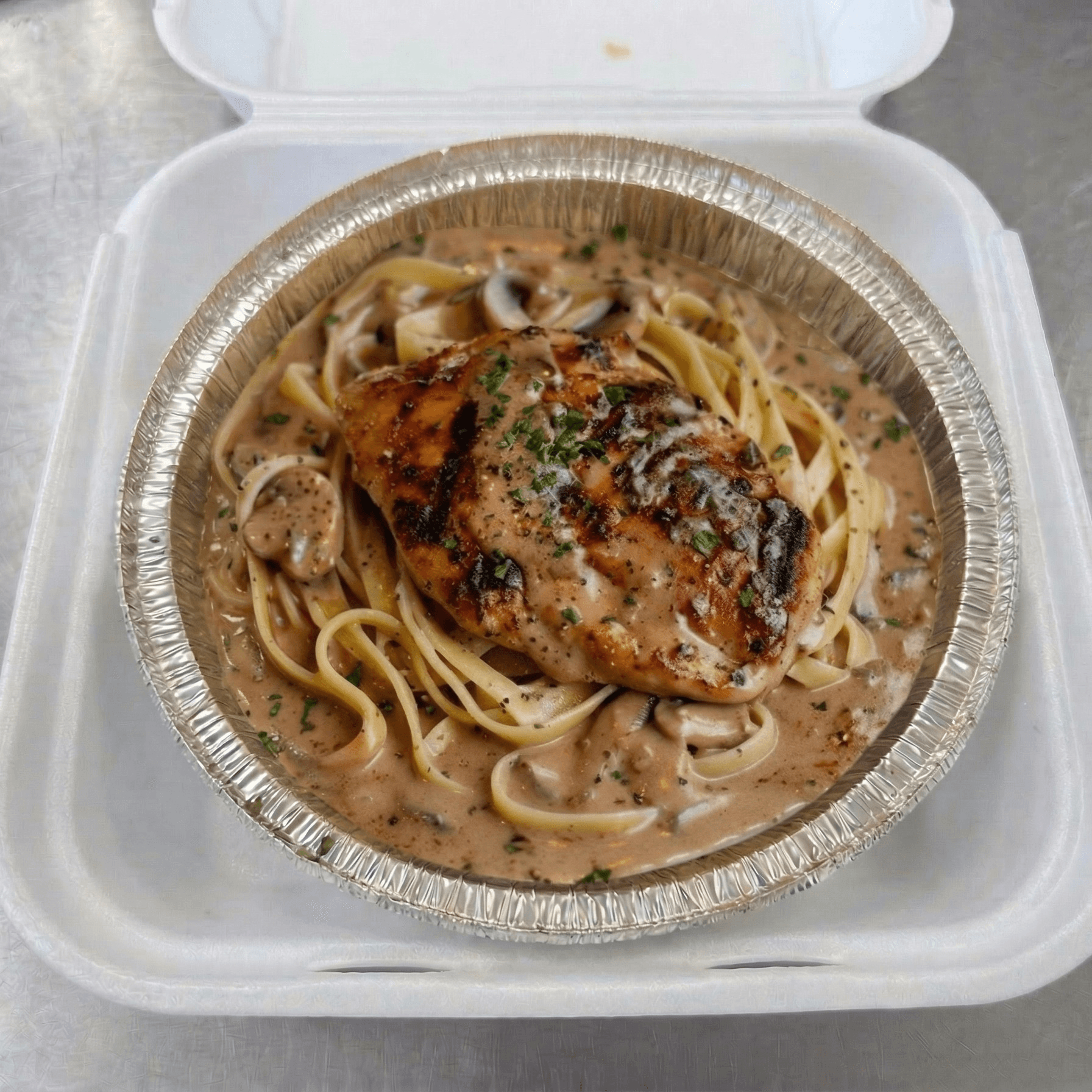 Chicken breast sauteed with mushrooms, marsala, and a side of spaghetti. Served with a side salad & garlic bread